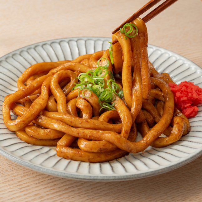 伊勢焼きうどん(2食入)は、お店の味そのままにご家庭で召し上がっていただけるように仕上げました。もちもちのうどんの食感と昔懐かしい醤油の香りがたまらない美味しさです。