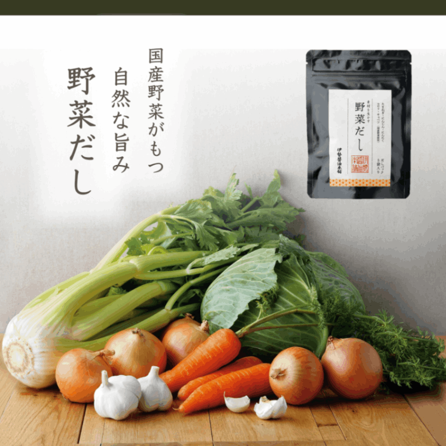 厳選した国産野菜5種類の旨みが味わえる野菜だしパック。
